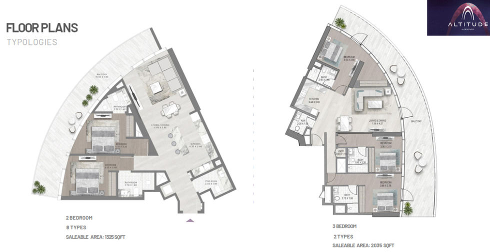 Có tổng 78 căn 2 phòng ngủ, với diện tích trung bình là 129m2 (1,386 sqft), giá từ AED 3,300,000 đến AED 4,530,000 (tương đương USD 898,000 đến USD 1,233,530)