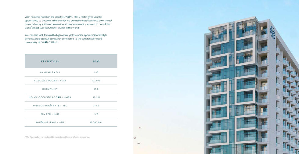 Lựa chọn giữa 295 phòng nghỉ và suite được thiết kế đẹp mắt và phong cách, với các tiện nghi hiện đại nhất trong phòng, ban công và bàn làm việc. Tận hưởng sự thoải mái của nhà hàng & quầy bar phục vụ cả ngày, phòng tập gym đầy đủ tiện nghi và hai hồ bơi ngoài trời được điều chỉnh nhiệt độ. Đối với những du khách đang có chuyến công tác quan trọng, DAMAC Hills 2 Hotel cung cấp bốn phòng họp với các cách sắp xếp linh hoạt.